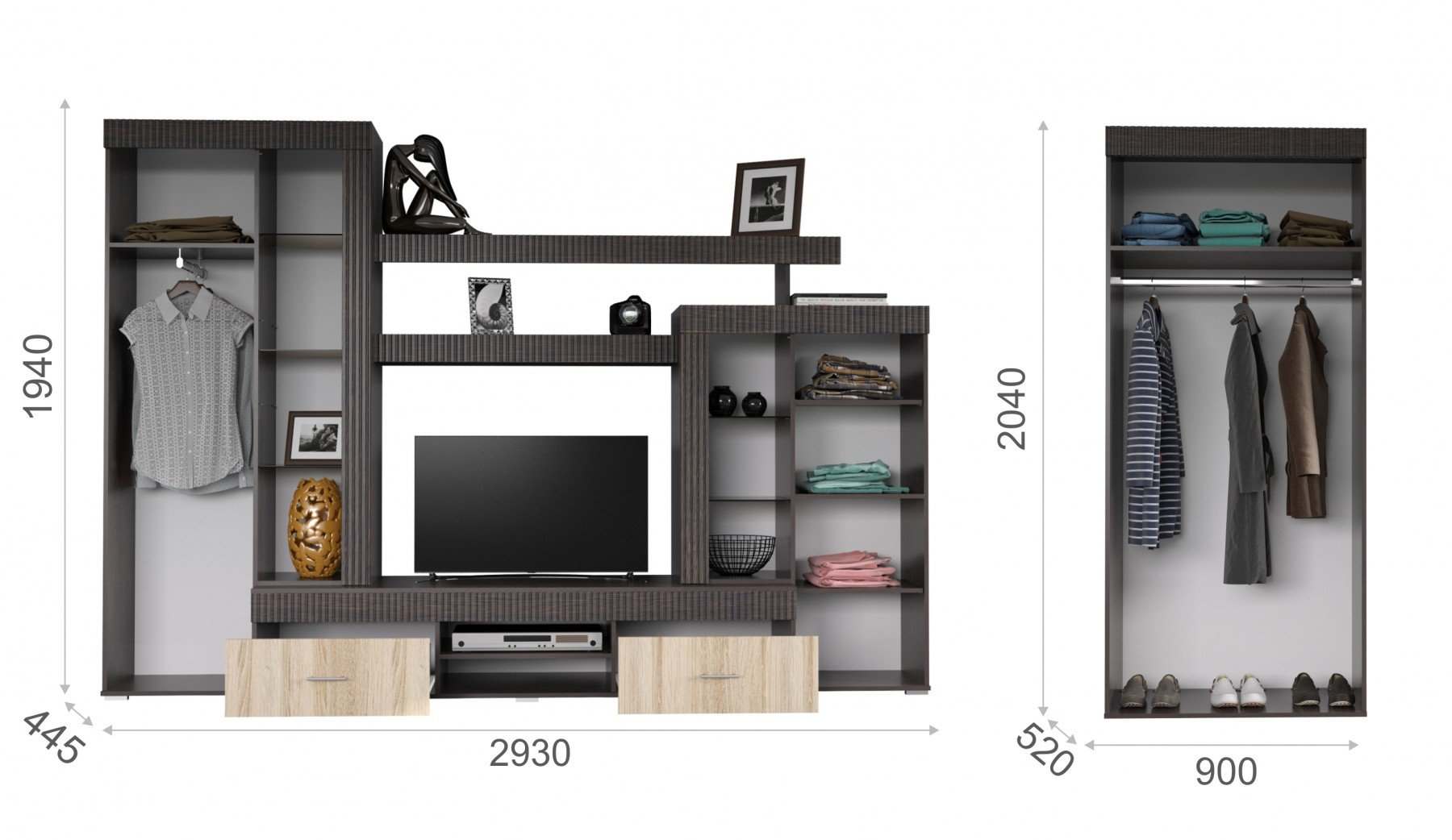 Габаритные размеры (шир./гл./выс.): 2930х448х1939